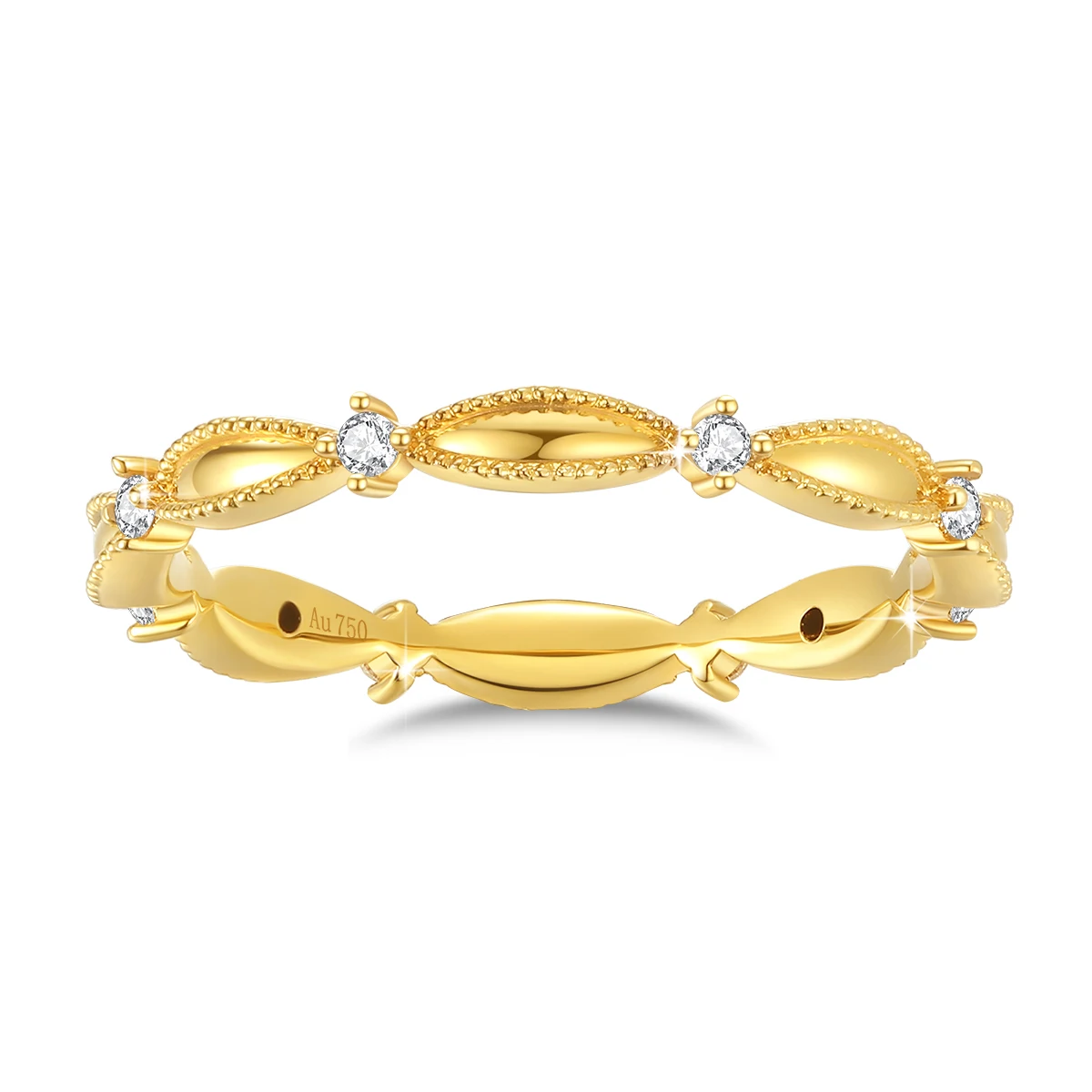 Anel feminino de moissanite, fino, marqulse, 18k, AU750, joia fina
