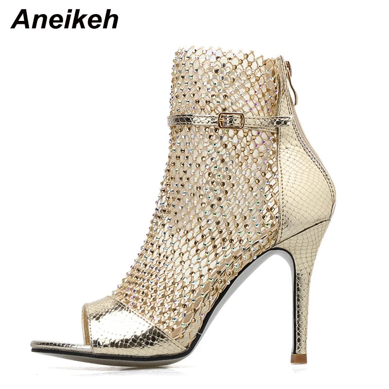 Nome da marca: ANEIKEH - Tipo de bota: BOTAS CHELSEA - Material de Levantamento: Malha (malha aérea) - Com ou instale acessórios profissionais: Outros (preencher por si mesmo) - Cobertura superior: Acima do tornozelo, mas não no joelho - Nome do departamento: Adulto - Material da sola: RUBBER - Material de alta qualidade: Malha (malha aérea) - Químico HIGN-em causa: Nenhuma - Origem: CN (Origem) - CN: GUANGDONG - Estação: Primavera/Outono - Material da palmilha: Plutônio - Método fixação superior: Colando - Tipo de salto: Saltos finos - Material do Forro: Plutônio - Seja impermeável: Sim - Seja com biqueira de metal: Não - Sexo: Mulheres - Altura da bota: ANKLE - Tipo de Item: BOTAS - Elemento de moda: BLING - Forma do dedo do pé: sandália aberta - Altura do salto: Super Alta (8cm-up) - Com plataformas: Sim - Altura da plataforma: 0-3cm - Estilo: SEXO - artesanal: Sim - Tipo de modelo: Sólida - Número do modelo: A9-216# - Ajuste: Se ajusta ao tamanho, use sei tamanho normal - Tipo de Fecho: ZIP - Salto alto: 10CM - Sapatos Mulher: Botas femininas - ANKLE Boots: botas de salto alto - Botins pretos: botas femininas - Botas Femininas: Sapatos Femininos - Botas femininas: Botas femininas de inverno 2025 - Botas de estilete: botas de mulher