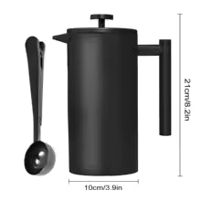 Cafeteira Prensa Francesa com Colher, Aço Inoxidável 304 com Parede Dupla, Mantém o Café ou Chá Quente