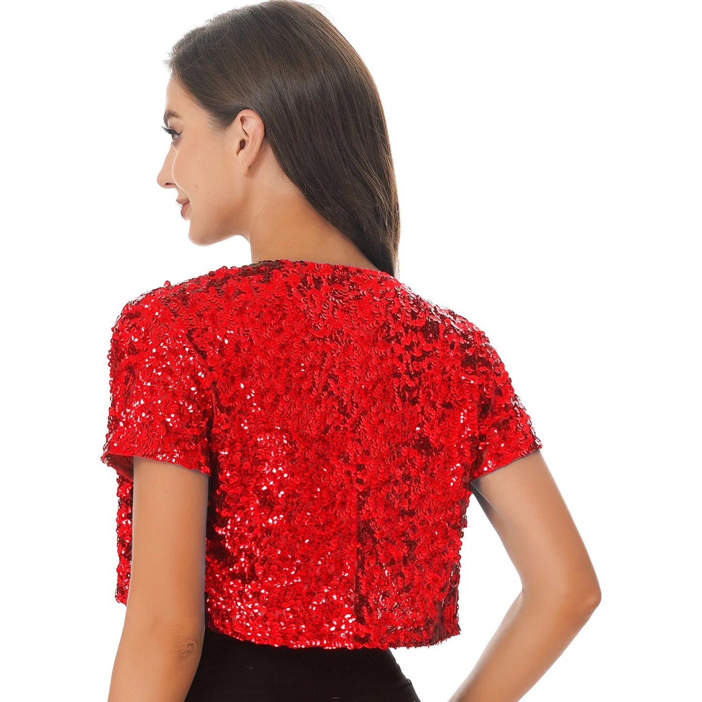 Mulheres brilhantes lantejoulas CROPPED jaqueta casaco GLÍTTER CARDIGAN OUTWEAR traje de performance de palco.