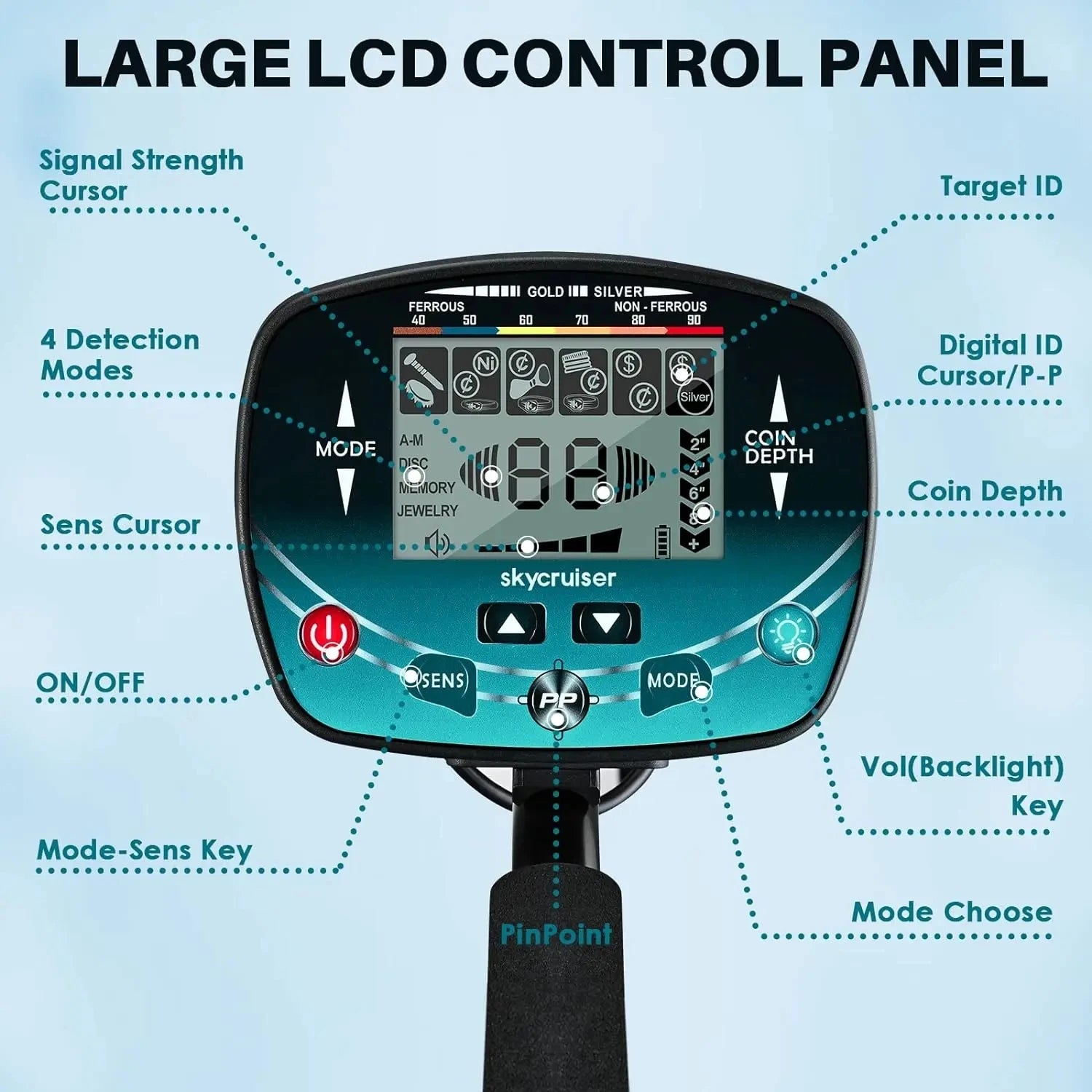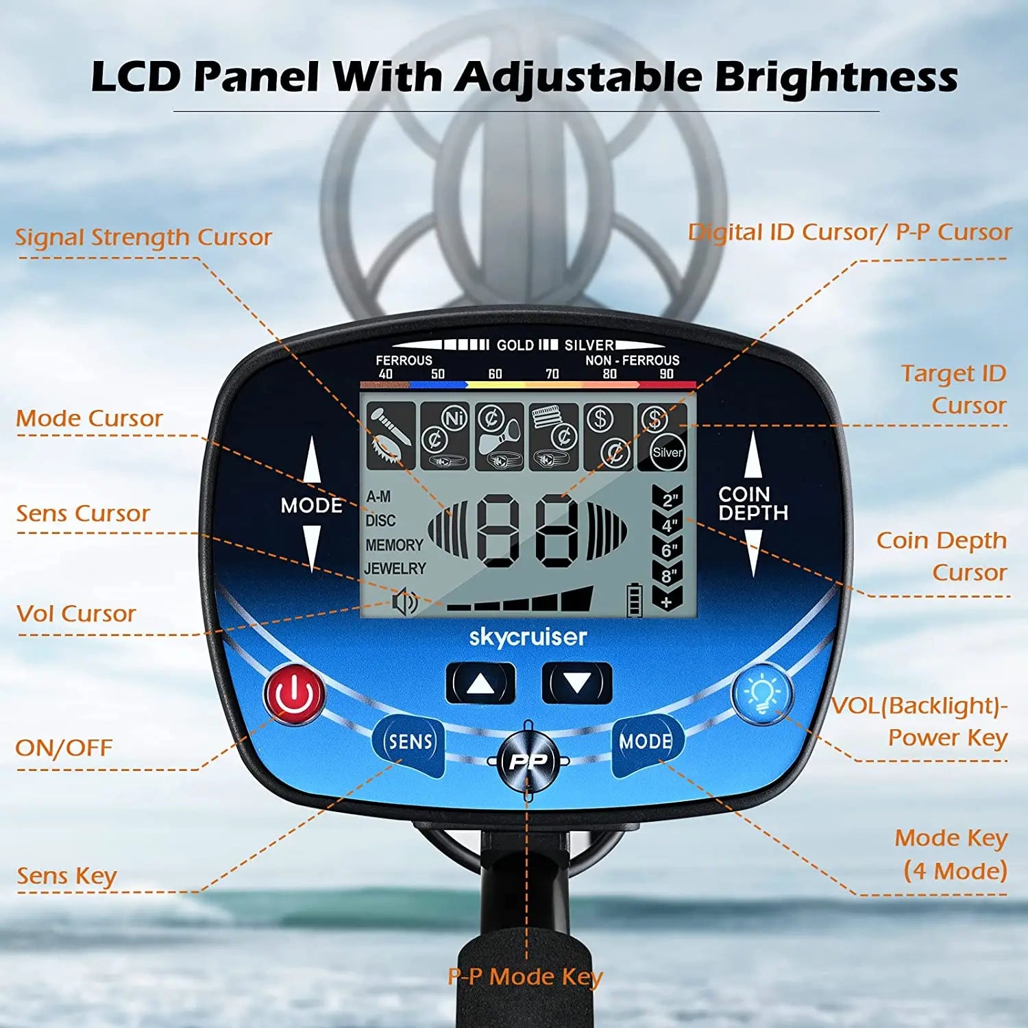 Detetor de metais subterrâneo com bobina de pesquisa à prova d'água IP68 de 9,8 polegadas