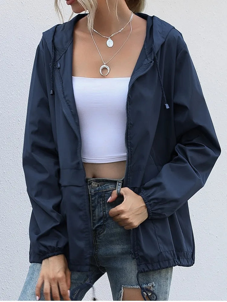 Uma das maiores vantagens desta jaqueta feminina com capuz é o seu capuz ajustável. Ele confere um charme esportivo enquanto protege contra chuvas inesperadas. Seja para uma caminhada no parque ou uma saída casual, esta jaqueta se adapta a várias ocasiões, mantendo você sempre elegante.
