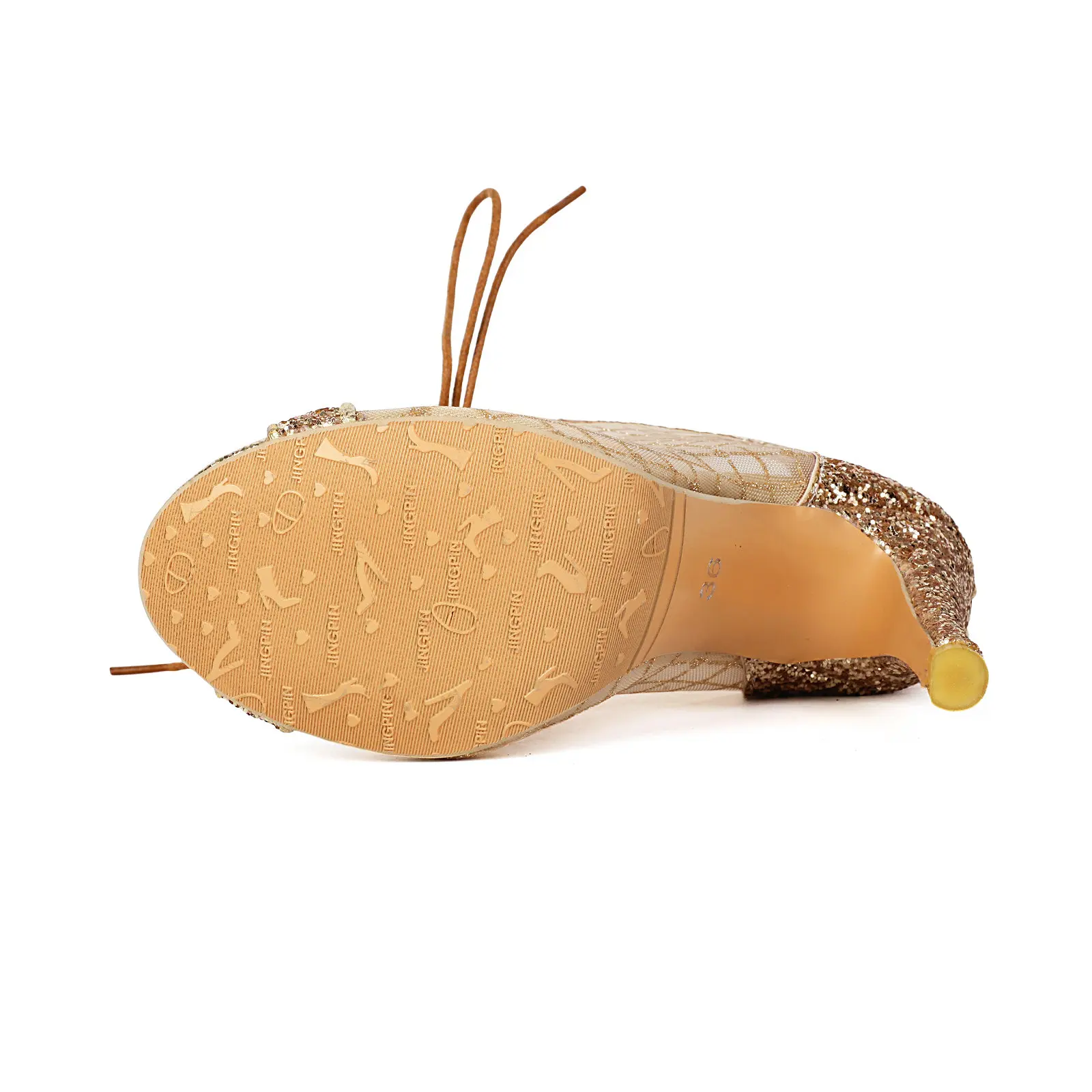 Descubra o glamour das sandálias gladiadoras da Aneikeh. Destaque-se com este par de botas de tornozelo femininas com salto deslumbrante e dourado. Ideais para quem busca um toque sensual e elegante em qualquer evento.
