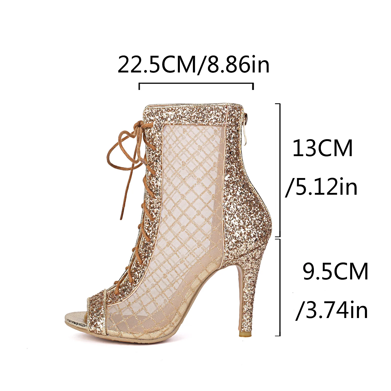 Sandálias de dança femininas sensuais e brilhantes, com salto agulha resistente, cadarço e zíper, ideais para o verão