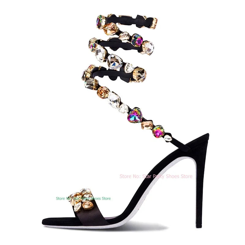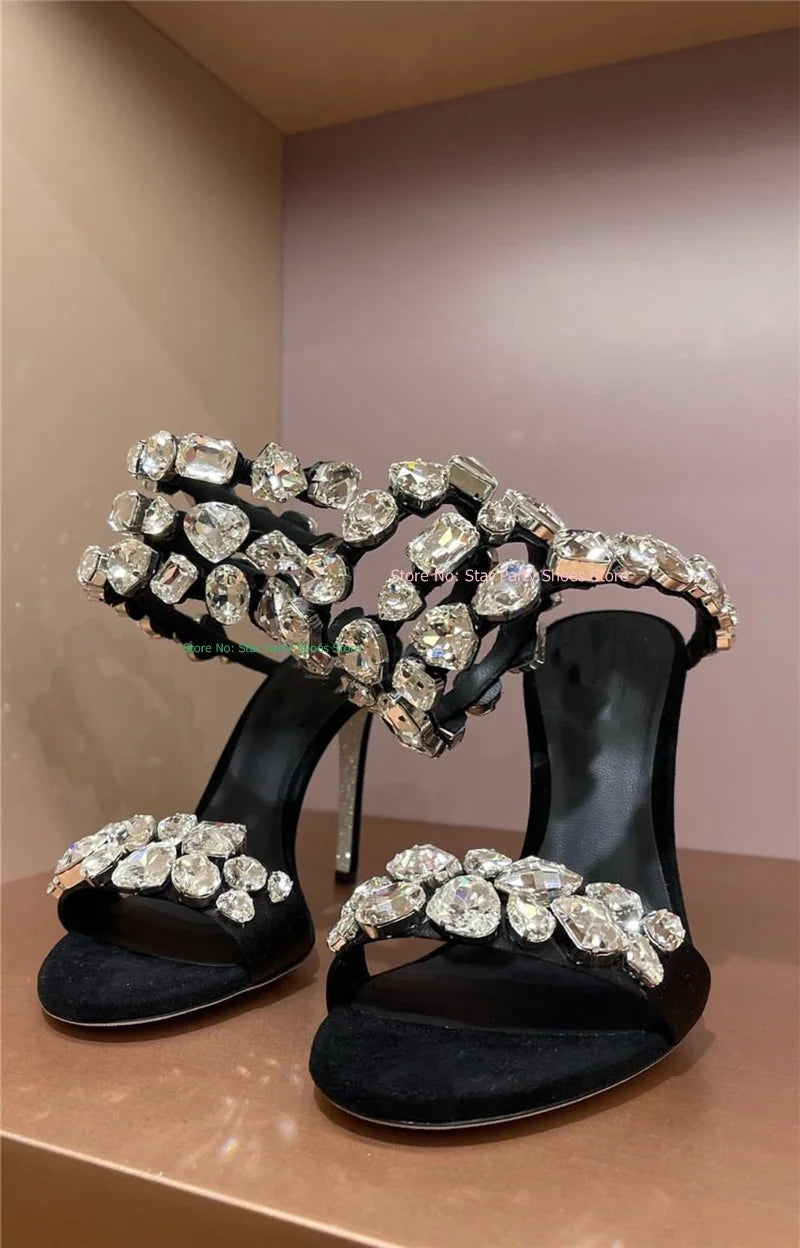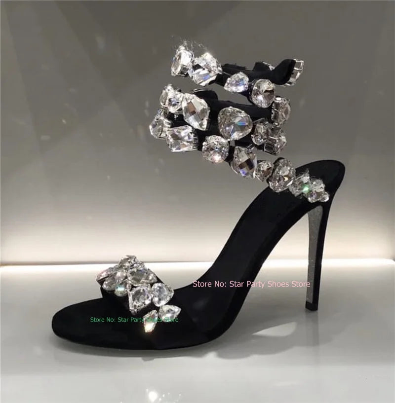 Sandálias de salto alto com strass, bico redondo, sapatos de banquete femininos, sapatos femininos