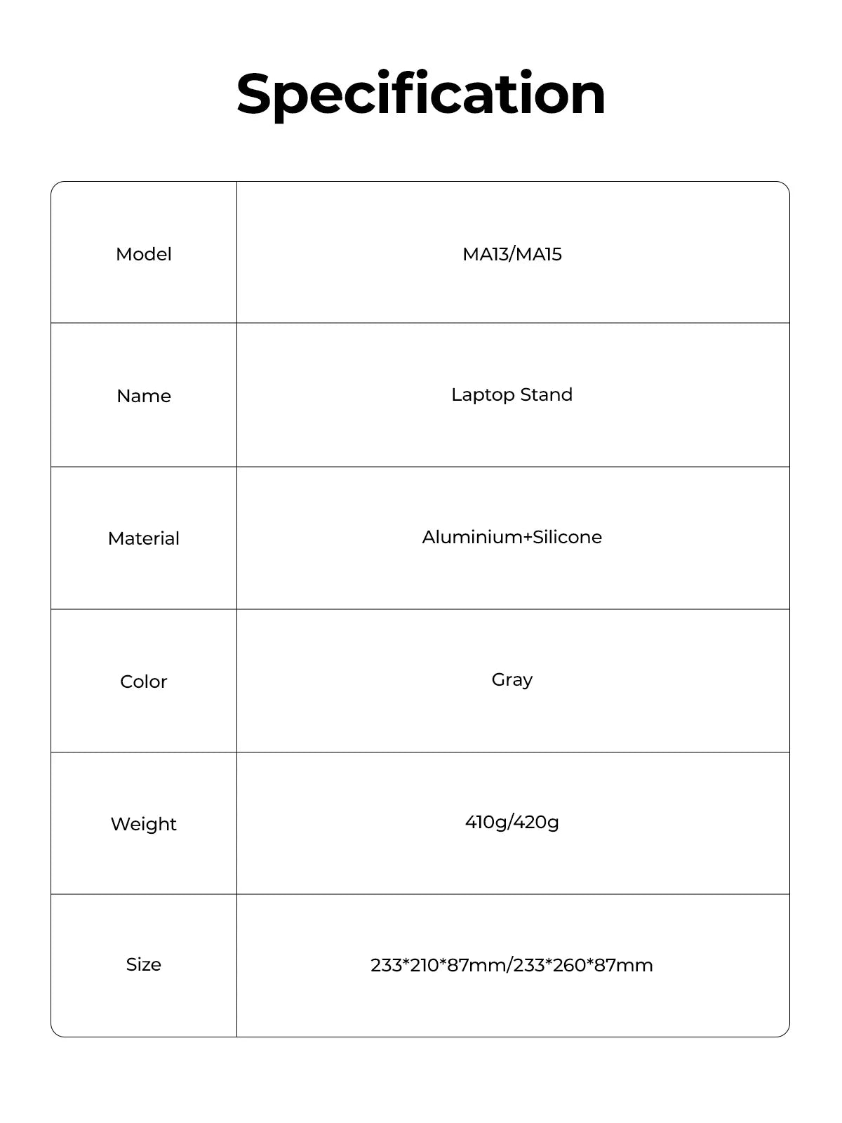 Feito de alumínio durável, o suporte vertical para notebook oferece robustez e estabilidade para seus dispositivos. Seu design 2-em-1 é destacável, proporcionando a flexibilidade necessária para ajustar conforme o uso do dia.