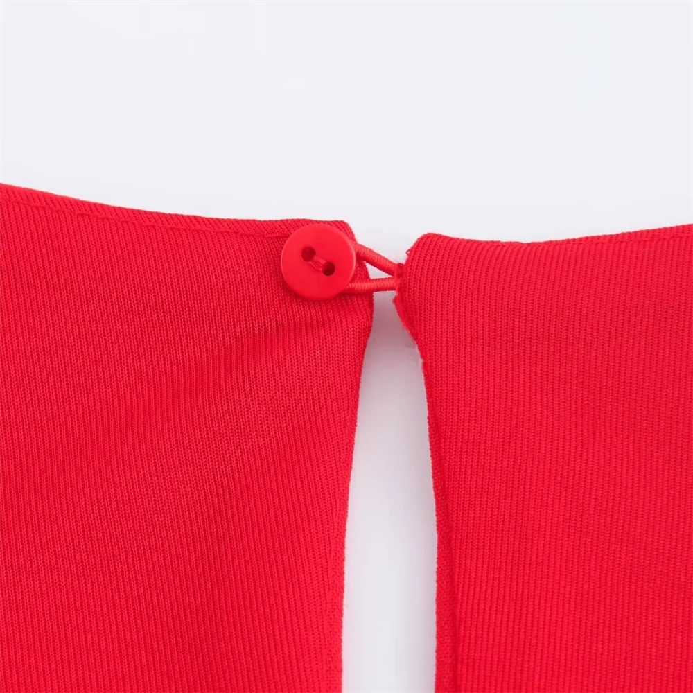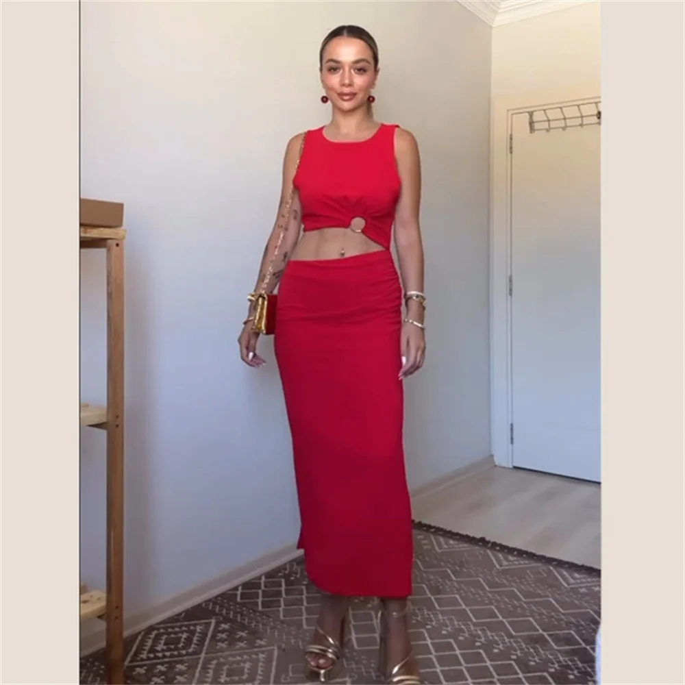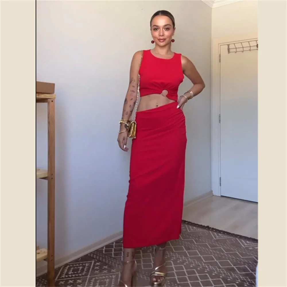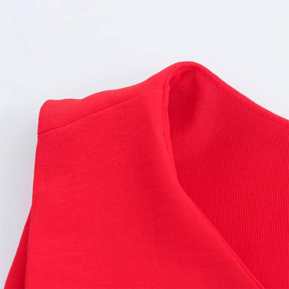 Com um design aberto, este vestido sem mangas destaca-se pela sua fivela de laço única. O corte elegante vestido slim fit valoriza a silhueta, oferecendo um ajuste perfeito que realça as suas curvas de maneira delicada.