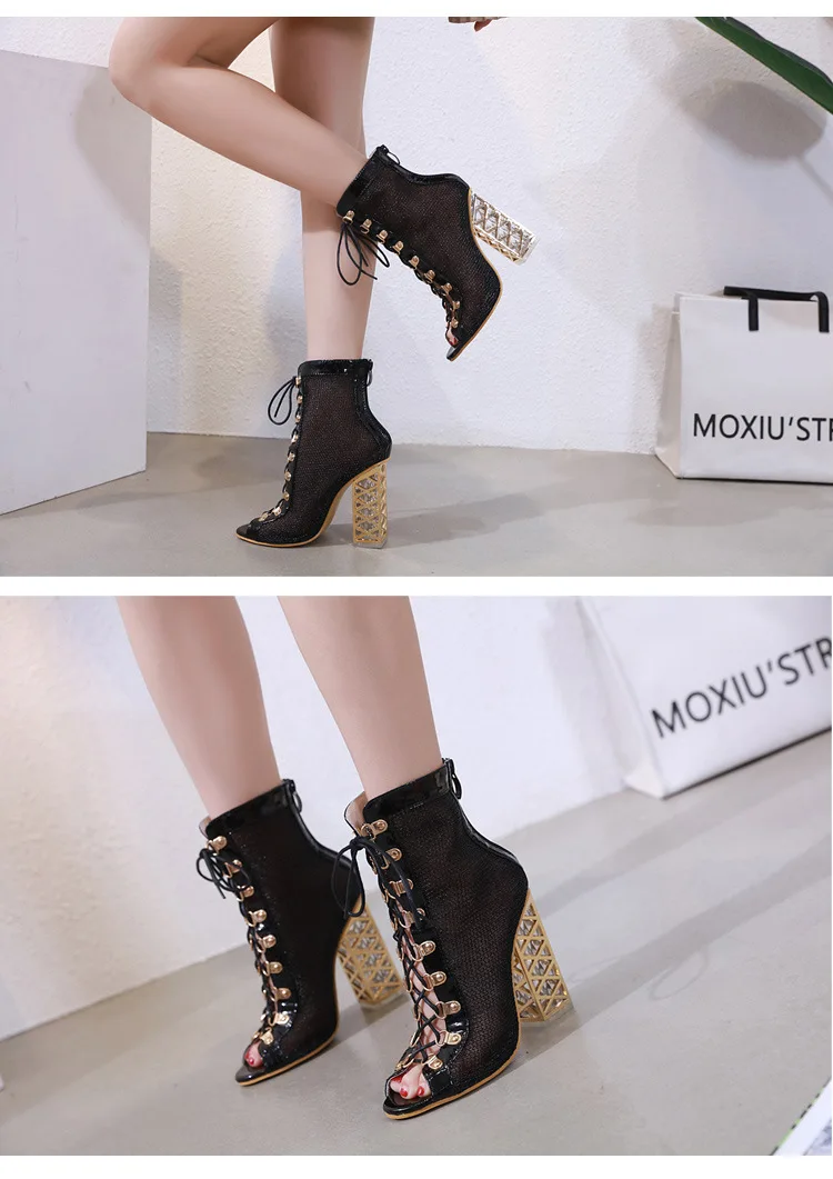Produto químico de alta preocupação: Nenhum - Encaixar: Fiel ao tamanho - Material de revestimento: Sintético - Com plataformas: Não - Tipo de salto: Salto Quadrado - Tipo de gáspea lateral: Coberto - Tipo de contador traseiro: Cobrir o calcanhar - Elemento de moda: CRISTAL - Altura do salto: Super Alta (8CM - Up) - Estilo: Romano - Tipo de padrão: Geométrico - Material da palmilha: Espuma de látex - Número do modelo: 3561 - Material da sola: Borracha - Ocasião: Casual - Tipo de sandália: Sandálias modernas - Material superior: Malha de ar - Marca: QICED - Origem: China continental - Tipo de fechamento: NADA - Tipo de Item: Sandálias - Nome do departamento: Adulto